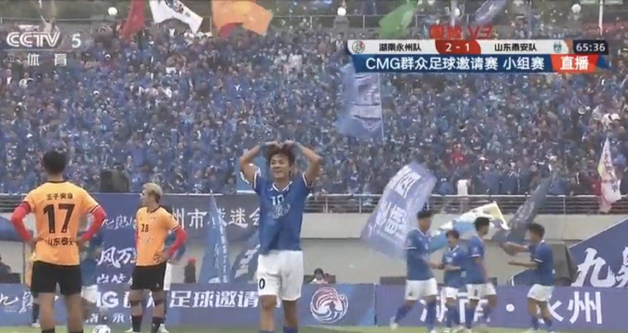 今天下午,永州体育场彻底沸腾了。 2026“九嶷山”CMG群众足球邀请赛在这里打响揭幕战,东道主湖南永州队迎战山东泰安队。 央视的直播镜头对准了这片草根球场,全国观众都看到了,什么叫做“开场即高潮”。
