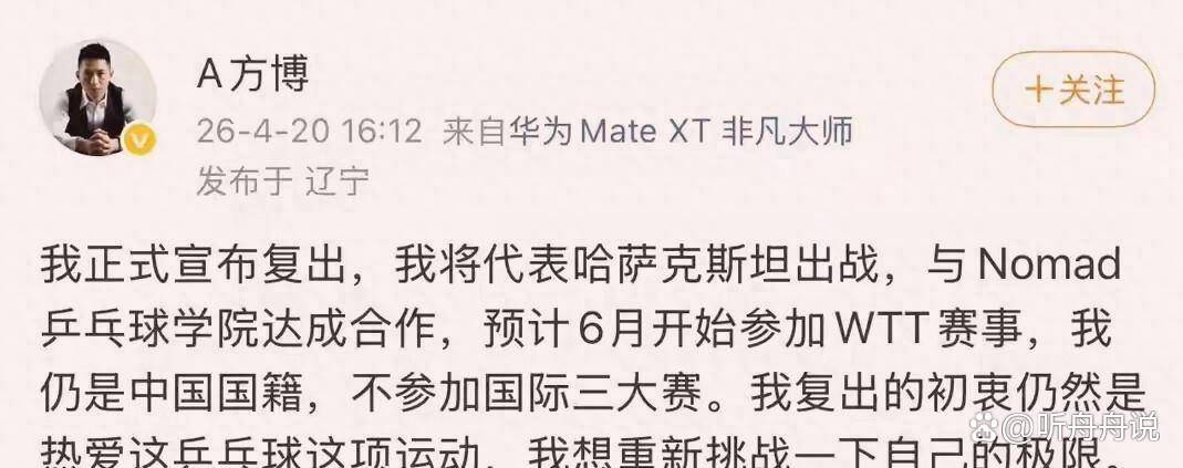 雨燕直播- NBA直播- 足球世界杯 LIVE34岁方博换协会复出!不改中国国籍打WTT回怼黑粉宣布暂停带货专心打球