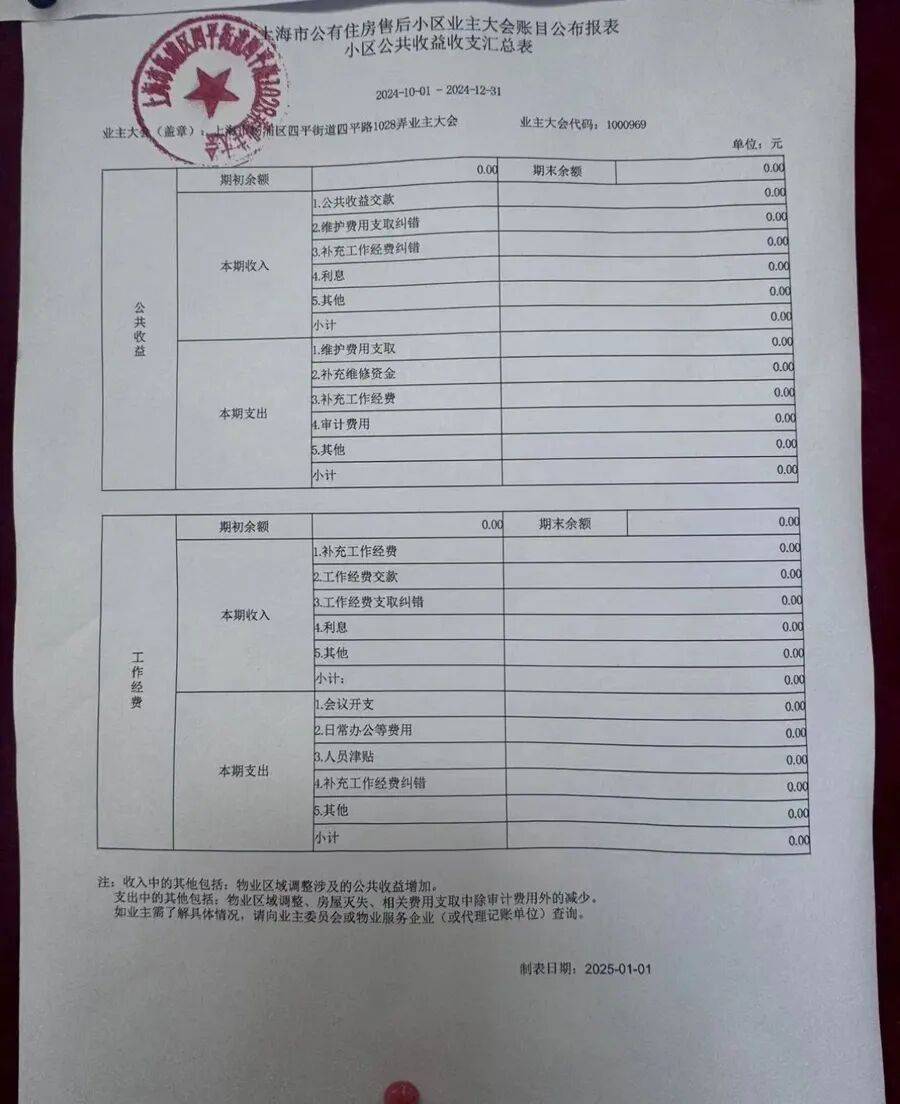 同样为了公共收益犯难的,还有家住杨浦区四平路1028弄公交新村的居民们:2025年12月,小区与四平物业的服务合同已经到期,但此前的公共收益却成了一笔“糊涂账”。“2025年第一、二季度均为0元,到了第三、四季度,又产生了5000元及2500元的公共收益。”居民周先生认为,“停车费应该是一笔稳定的收入。目前来看,物业公示的这些数字毫无根据。”